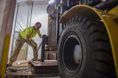 | Keywords: MV Cape Ray 140617-N-XB010-004.jpg en Zachary Lay a chemical operator for Edgewood Chemical Biological Center aboard MV Cape Ray secures a full-size model chemical agent container for processing in the Field Deployable Hydrolysis System on the ship during an exercise in operating the FDHS Cape Ray is tasked with the neutralization of specific chemical materials from Syria in accordance with the Organization for the Prohibition of Chemical Weapons guidelines while operating in international waters <br>Unit Defense Media Activity 2014-06-17 ECBC https //www dvidshub net/image/1433594/mv-cape-ray 140617-N-XB010-004 2014-07-03 10 55 NAVAL STATION ROTA ES PD-USGov-Military-Navy Naval Station Rota Images from DoD uploaded by Fæ |
