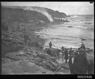 | Keywords: mv malabar mvmalabar malabar shipwreck ship burns philp line burnsphilpline burns, philp & company burnsphilpcompany blackandwhite monochrome photo border outdoor black and white This photograph depicts members of the public gathering cargo and debris that washed ashore from the wreckage of MV MALABAR at Long Bay headland. Visiting the wreck was a popular outing for Sydneysiders. The ship was operated by Burns Philp & Co and carrying passengers and cargo when it grounded on 2 April 1931 in poor visibility. This photo is part of the Australian National Maritime Museum’s Samuel J. Hood Studio Collection. Sam Hood (1872-1953) was a Sydney photographer with a passion for ships. His 72-year career spanned the romantic age of sail and two world wars. The photos in the collection were taken mainly in Sydney and Newcastle during the first half of the 20th century. Object no. 00035926 This photograph depicts members of the public gathering cargo and debris that washed ashore from the wreckage of MV MALABAR at Long Bay headland. Visiting the wreck was a popular outing for Sydneysiders. The ship was operated by Burns Philp & Co and carrying passengers and cargo when it grounded on 2 April 1931 in poor visibility. This photo is part of the Australian National Maritime Museum’s Samuel J. Hood Studio Collection. Sam Hood (1872-1953) was a Sydney photographer with a passion for ships. His 72-year career spanned the romantic age of sail and two world wars. The photos in the collection were taken mainly in Sydney and Newcastle during the first half of the 20th century. Object no. 00035926 |