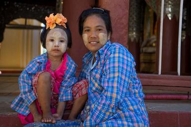 Keywords: myanmar burma asia travel people pagoda traditional culture child mother thanaka face paint burmese