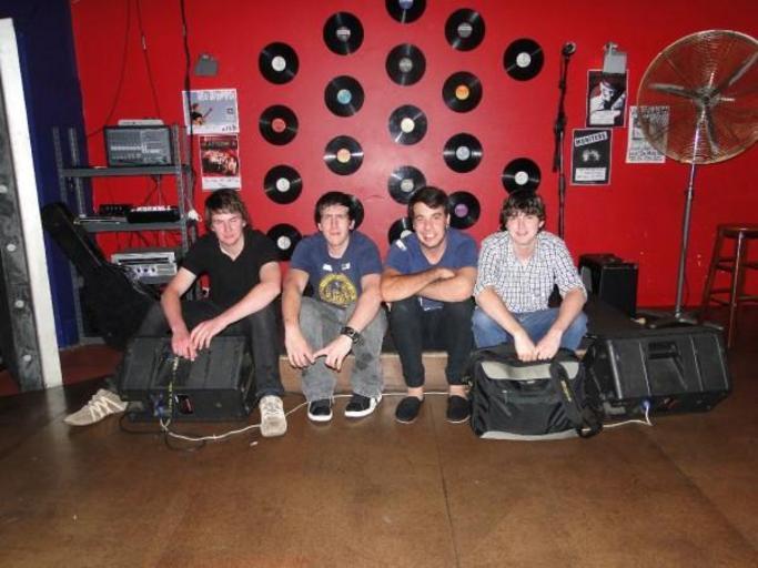 Keywords: MyCassidyBand.jpg en Picture or Brisbane rock band My Cassidy at their second gig in West End own Mutantdogs5 2009-12-27 Rock music groups from Australia Musicians from Australia Sitting men Group photographs of men