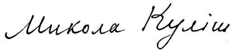 Keywords: Mykola Kulish Signature.png uk Автог аф иколи Куліша 1928 File Письменники Радянської Ук аїни 1928 djvu н other versions Custom license marker 2016 11 18 PD-Ukraine Signatures