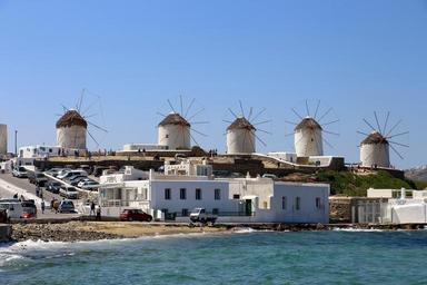 Keywords: mykonos greece windmills sea greek island white aegean sea holiday tourism island by the sea