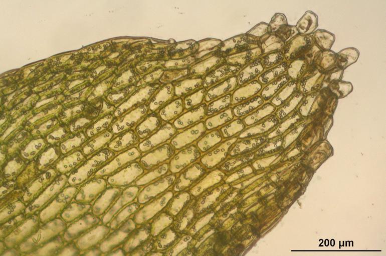 Keywords: Mylia anomala (b, 145154-483024) 9829.JPG en Mylia anomala de Mylia anomala Unechtes Dünnkelchmoos own HermannSchachner 2013-05-02 Mikroskopaufnahme Blatt mit Brutkörper Mylia anomala Cc-zero