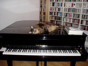 Keywords: MyNeuteredMaleMaineCoonCatFigaro.JPG en This is a picture I took of my neutered male Main Coone cat Figaro own Francesco Malipiero 2008-10-24 Francesco Malipiero Maine Coon Lying cats Grand pianos Cats and music