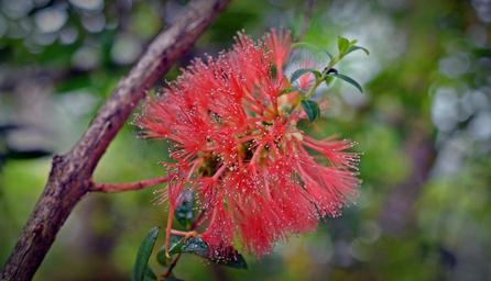 Keywords: myrtaceae myrtle plant red blossom bloom brush ornamental ironwood tree
