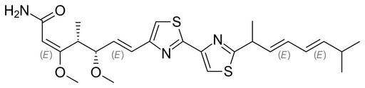 | Keywords: Myxothiazol.svg Skeletal formula of myxothiazol Created using http //www acdlabs com/download/chemsk html ACD/ChemSketch 8 0 and http //www inkscape org Inkscape Own 2007-04-28 Fvasconcellos 21 50 28 April 2007 UTC valid svg Alkene derivatives Antifungals Isopropyl compounds Methyl ethers Thiazoles Unsubstituted primary amides |