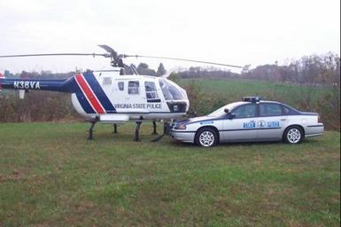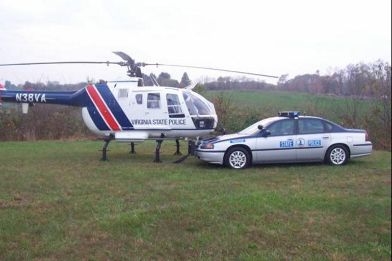 | Keywords: N38VA 1.jpg Virginia State Police American Eurocopter B0-105 own 04-05-08 HardCharger2103 Eurocopter Bo 105 Police helicopters in the United States Virginia State Police State police automobiles of the United States Chevrolet Impala eighth generation in police service Blue and silver police automobiles |