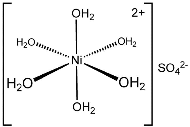 Keywords: N9(H2O)6SO4.png chemical structure of hydrated nickel sulfate 2007-04-03 own assumed Smokefoot Nickel II sulfate