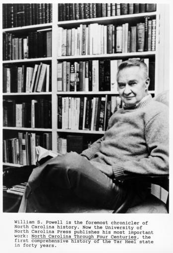 | Keywords: blackandwhite people monochrome photo border black and white William S. Powell (Bill Powell) in UNC Library, c.1980s. 'North Carolina Through Four Centuries' was published by UNC Press in 1989 and it won the 1989 Mayflower Cup for Nonfiction, Society of Mayflower Descendants in the State of North Carolina. From the General Negative Collection, State Archives of North Carolina. William S. Powell (Bill Powell) in UNC Library, c.1980s. 'North Carolina Through Four Centuries' was published by UNC Press in 1989 and it won the 1989 Mayflower Cup for Nonfiction, Society of Mayflower Descendants in the State of North Carolina. From the General Negative Collection, State Archives of North Carolina. |