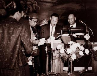| Keywords: people monochrome Martin Luther King, Jr., in Durham in 1958. From the General Negative Collection, State Archives of North Carolina. Martin Luther King, Jr., in Durham in 1958. From the General Negative Collection, State Archives of North Carolina. |