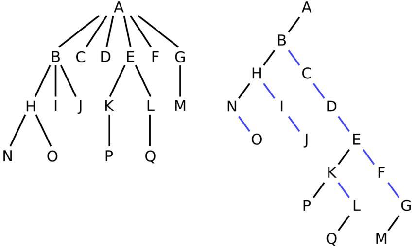 Keywords: N-ary to binary.svg en An example of n-ary to binary tree conversion own CyHawk 2008-08-29 Image Nary_to_binary_tree_conversion png Binary trees