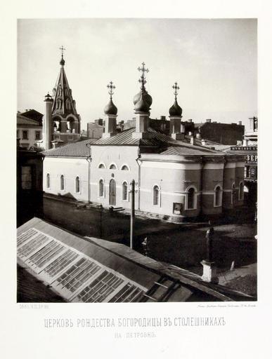 | Keywords: N.A.Naidenov (1882) 26. Nativity in Stoleshniki.png Це ковь Рождества Бого одицы в Столешниках на Пет овке осква Church of the Nativity of the Theotokos in Stoleshniki Moscow Plate 26 vol 2 of иколай айденов осква Собо ы монасты и це кви 1882 <br>Online source http //imwerden de/pdf/najdenov_moskovskie_sobory_tom2_1882 pdf Photographed in 1881 published in 1882 Nikolai Naidenov 1834-1905 PD-Old-100 thumb left cropped 55 45 47 58193886762001 N 37 37 1 2183952331542969 E Demolished churches in Moscow Destroyed in the Soviet Union in 1928 Naidenov Album 1882 2 26 Photographs by Nikolay Naidenov Historical images of Petrovka Street 11 Stoleshnikov Lane 22 |