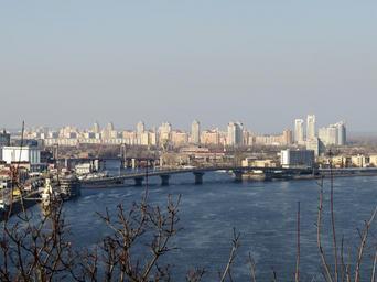 Keywords: Kiev island Naberezhno-Khreshchatytska street Gavan bridge Rybalsky cable-stayed