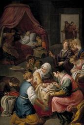 | Keywords: Nacimiento de la Virgen (Jusepe Leonardo).jpg Artwork creator Jusepe Leonardo c 1642 oil canvas cm 180 122 Institution Museo del Prado object history credit line accession number http //www museodelprado es/coleccion/galeria-on-line/galeria-on-line/zoom/1/obra/nacimiento-de-la-virgen-2/oimg/0/ http //imagencpd aut org/4DPict file 20 rec 16 911 field 2 PD-old-100 Jusepe Leonardo 1642 paintings Paintings of birth of Mary 1640s paintings in the Prado Museum 17th-century oil on canvas paintings in Spain Women in bed in art 1640s paintings from Spain 1640s paintings in Spain 17th-century religious paintings in Spain 17th-century paintings of New Testament Pointing right in art People in rooms in art |