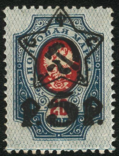 | Keywords: Nadpechatka RSFSR 5 rub na czarskoj marke 20 kop.jpg  Postage stamp of Russian Empire 20 kopecks Overprinted by Russian SFSR as 5 rubles 1918 Почтовая ма ка РСФСР 1918 надпечатка 5  ублей на ца ской ма ке 20 копеек чистая ru ЦФА Sello zarista de 20 kopeks Resellado por la RSFS de Rusia por 5 rublos 1918 Originally scanned and upload by Vizu from personal collection Originally from ru wikipedia ru свой скан бумажных ма ок Post of Russian Soviet Federative Socialist Republic / ru Почта РСФСР 1918; 2008 original upload date PD-RU-exempt stamps PD-art Stamps of Russia 1918 Files uploaded by User Secretary Red stars on stamps 1918 stamps Stamps printed in Russian Empire area during Civil War Overprints on stamps of the Russian Empire Hammer and sickle on stamps Stamps of Russia to be categorised by subject |