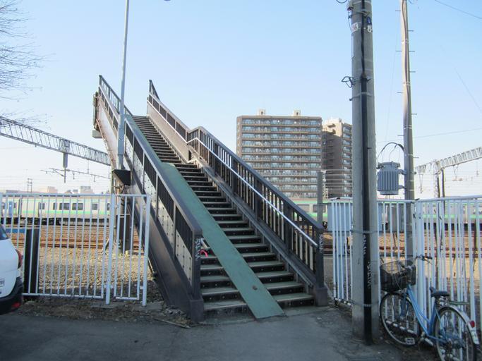 Keywords: Naebo sta West bridge.jpg ja 苗穂駅から西に500m程度に位置する橋 サッ ロビール博物館やアリオ 幌へ向かう際にはここを るのが 短となる 奥に見えるのは721系電車 2012-04-12 own Ninosan cc-zero Uploaded with UploadWizard Naebo Station