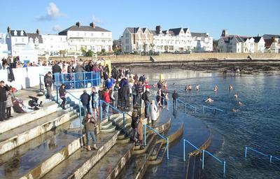 | Keywords: Nagegie d'Noué au Hâvre des Pas Jèrri 25 d'Dézembre 2010 02.jpg Lé 25 d'Dézembre 2010 un fliotchet d'monde lus bangnîtent s'lon la couôteunme dans la bangnérêsse du Hâvre des Pas Saint Hélyi Jèrri The traditional Christmas Day swim at Havre des Pas bathing pool brought a crowd of swimmers supporters and spectators out on 25th December 2010 in Saint Helier Jersey own photo 25 dé Dézembre 2010 Man vyi Own work all rights released Public domain Christmas 2010 in Jersey 25 December 2010 in Saint Helier Jersey People of Jersey in 2010 Swimming in Jersey Winter swimming 2010 in swimming Havre des Pas bathing pool Coasts of Saint Helier Jersey |