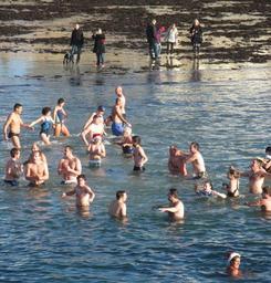 MAKE A MEME View Large Image Nagegie d'Noué au Hâvre des Pas Jèrri 25 d'Dézembre 2010 08.jpg Lé 25 d'Dézembre 2010 un fliotchet d'monde lus bangnîtent s'lon la couôteunme dans la bangnérêsse du Hâvre des Pas Saint Hélyi Jèrri The traditional Christmas Day ...