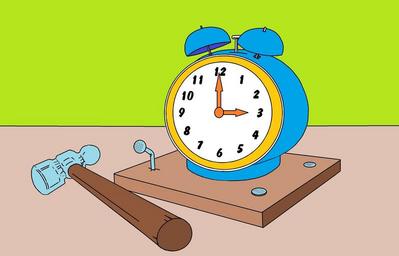 Keywords: nail watch clock drawing surreal hammer nails numbers arrows hour minutes signal nailed
