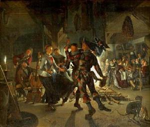 | Keywords: Naiveau Bohnenkönigsfest.JPG http //www schloss-wahn de/bestaende html 1706 creator Matthijs Naiveu oil canvas doubliert PD-old-100 Matthys Naiveu 1706 paintings Deutsche Wanderbühne oil paintings of people Location of museum or gallery missing People with fire in art Dance in paintings |