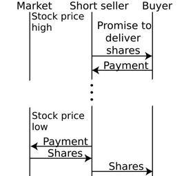 Keywords: Naked short selling.svg en A diagram demonstrating naked short selling Time goes from top to bottom Own Dcoetzee 2008-10-22 Diagrams in English Financial economics Time diagrams