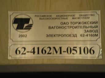 Keywords: Nameplate of ET2-051.JPG Elektrichka ET2-051 at St Petersburg Russia Nameplate own 2009-02-29 user AndreyA ET2 051 interior