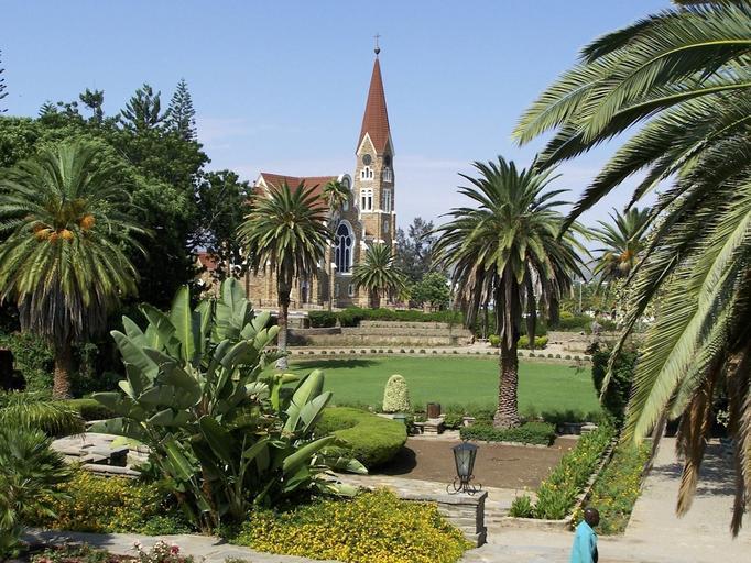 MAKE A MEME View Large Image namibia africa sky building palms palm trees nature outside church grass plants man sidewalk flowers