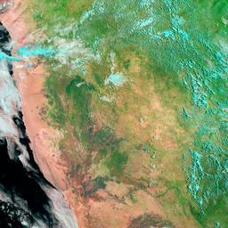| Keywords: Namibia TMO 2006058 lrg.jpg Flooding in Namibia Several days of heavy rain triggered devastating floods in south-central Namibia at the end of February 2006 The rains filled the Hardap Dam and on Saturday February 25 the water flowed through the flood gates and flooded the city of Mariental When the Moderate Resolution Imaging Spectroradiometer MODIS on NASA ™s Terra satellite captured the top image on February 27 the overflow of water had swollen the Fish River south of the city The bright green agricultural region around the city was also still flooded when this image was taken According to the United Nations Office for the Coordination of Humanitarian Affairs 122 houses and 80 businesses were submerged at the time of this image Two people drowned in the floods These images are shown in false color Plant-covered land is green with agricultural land much brighter than natural vegetation Bare earth is tan and pink water is blue and clouds are pale blue and white The lower image shows the Hardap region on February 15 before the rains started http //visibleearth nasa gov/view_rec php id 20502 Ma7 26th 2007 Credit NASA images created by Jesse Allen Earth Observatory using data obtained from the Goddard Earth Sciences DAAC NASA Terms of Use; For all non-private uses NASA's Terms Of Use are as follows The imagery is free of licensing fees NASA requires that they be provided a credit as the owners of the imagery Visible Earth Addendum Beyond the NASA Terms the Visible Earth team requests but does not require The Visible Earth be provided a credit as the location that the imagery was found at A URL be provided either to the Visible Earth http //visibleearth nasa gov/ or to the page providing the link to the used image PD-USGov Satellite pictures of Namibia |