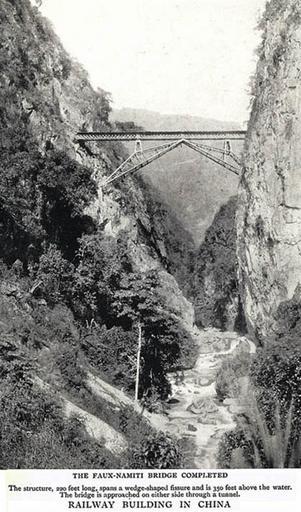Keywords: Namitibridge.jpg en Namiti Bridge on the Kunming-Hekou Railway Yunnan China The bridge is also known as Wujiazhai Bridge after a nearby town It is located in North Wantang Township of Pingbian County between Boduqing and Luogu stations 五家寨人字桥(南溪桥 Nam-Ti Bridge),位于屏边县湾塘乡附近的波渡箐站与 姑站之间 F A Talbot The Railway Conquest of the World London William Heinemann 1911 http //www uh edu/engines/epi2349 htm at HighestBridges com PD-old Railway bridges in China Bridges in Yunnan Wujiazhai Bridge Société de Construction des Batignolles