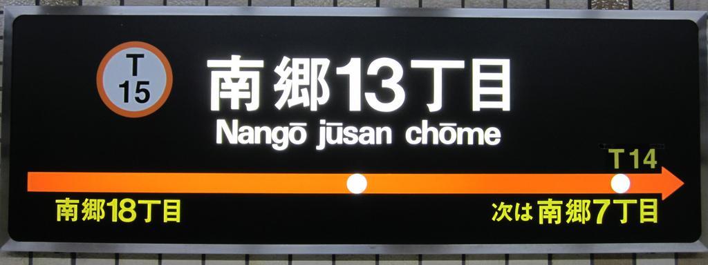 Keywords: Nango 13 sta signs.jpg ja 幌市営 下鉄 西線南郷13丁目駅駅名標(大 ・宮の沢方 ) 2012-05-21 own Ninosan cc-zero Uploaded with UploadWizard Train station signs in Hokkaido Nangō-Jūsan-Chōme Station