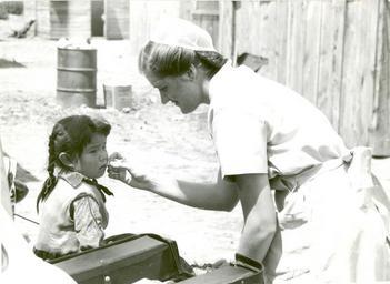 | Keywords: nurse station wagon stationwagon child naomi stoltzfus mennonite board of missions mennonite mission network voluntary service arizona naomistoltzfusmennoniteboardofmissionsmennonitemissionnetworkvoluntaryservicearizona monochrome Caption: September, 1956. Naomi Stoltzfus working from station wagon at camp. Citation: Mennonite Board of Missions. Photographs. Arizona VS/Migrant Units, 1955-1962. IV-10-7.2 Box 2 Folder 1, photo #79. Mennonite Church USA Archives - Goshen. Goshen, Indiana. Caption: September, 1956. Naomi Stoltzfus working from station wagon at camp. Citation: Mennonite Board of Missions. Photographs. Arizona VS/Migrant Units, 1955-1962. IV-10-7.2 Box 2 Folder 1, photo #79. Mennonite Church USA Archives - Goshen. Goshen, Indiana. |
