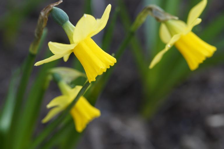 Keywords: narcissus daffodil spring close three bloom flowers yellow flower