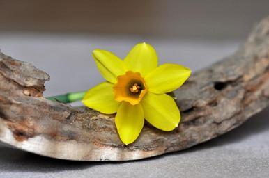 Keywords: narcissus flower spring flower early bloomer yellow yellow flower wood piece close