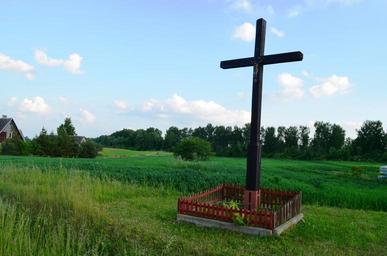 Keywords: Narezkai, kryžius.JPG Kryžius Narezkai Trakų raj own 2015-06-13 Šarūnas Šimkus Wooden crosses in Lithuania