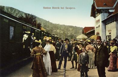 | Keywords: Narrow-Gauge-Railway Ostbahn Station-Bistrik.jpg en Narrow-gauge railway station Bistrik on the Eastern line Sarajevo - Uvac Old postcard Daniel A Kajon Sarajevo 1906 43 51 9 71 N 18 25 58 81 E heading WSW PD-old-70-1923 Train stations at Bosnian Eastern railway Postcards of Sarajevo 1906 in Sarajevo Rail transport in Bosnia and Herzegovina in the 1900s |