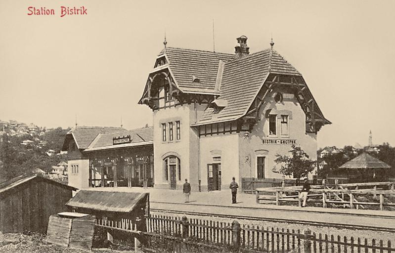 | Keywords: Narrow-Gauge-Railway Ostbahn Station-Bistrik (3).jpg en Narrow-gauge railway station Bistrik on the Eastern line Sarajevo - Vardište - Uvac Old postcard Albert Thier Sarajevo 1910 43 51 09 7 N 18 25 59 7 E heading WNW Train stations at Bosnian Eastern railway Postcards of Sarajevo Rail transport in Bosnia and Herzegovina in the 1900s PD-old-70-1923 |