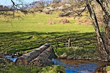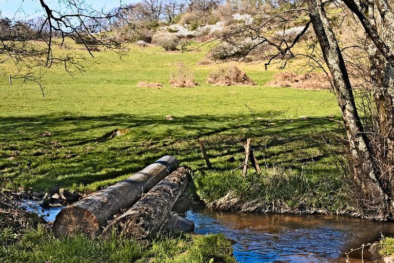 Keywords: narvau gorge morvan nièvre water courses river passage bridge wood tree trunks cross