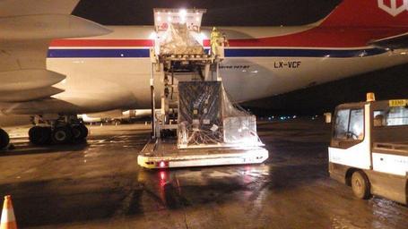 | Keywords: nasa cnes thales alenia space thalesaleniaspace jason-3 jason3 jason-3 satellite jason3satellite noaa satellites noaasatellites indoor NASA Ships Sensors for Seafaring Satellite to France The three NASA-built instruments and associated ground support equipment for the U.S./European Jason-3 ocean altimetry satellite are removed from a Cargo Lux 747-800 transport plane in Luxembourg on May 21, 2013, following a transatlantic flight. The instruments left NASA's Jet Propulsion Laboratory, Pasadena, Calif., on May 19 and arrived at the Thales Alenia Space Integration Center in Cannes, France on May 22. There they were integrated with the Jason-3 spacecraft and tested in preparation for a July 2015 California launch. Jason-3 is a joint mission with CNES, EUMETSAT, NASA, and NOAA to measure ocean topography. Credit: NASA/JPL-Caltech Original Link: www.jpl.nasa.gov/news/news.php?release=2013-172 NASA Ships Sensors for Seafaring Satellite to France The three NASA-built instruments and associated ground support equipment for the U.S./European Jason-3 ocean altimetry satellite are removed from a Cargo Lux 747-800 transport plane in Luxembourg on May 21, 2013, following a transatlantic flight. The instruments left NASA's Jet Propulsion Laboratory, Pasadena, Calif., on May 19 and arrived at the Thales Alenia Space Integration Center in Cannes, France on May 22. There they were integrated with the Jason-3 spacecraft and tested in preparation for a July 2015 California launch. Jason-3 is a joint mission with CNES, EUMETSAT, NASA, and NOAA to measure ocean topography. Credit: NASA/JPL-Caltech Original Link: www.jpl.nasa.gov/news/news.php?release=2013-172 |