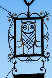 Keywords: nasal shield owl advertising advertising sign bookstore wisdom blacksmithing shield golden black stylized advertisement art metal