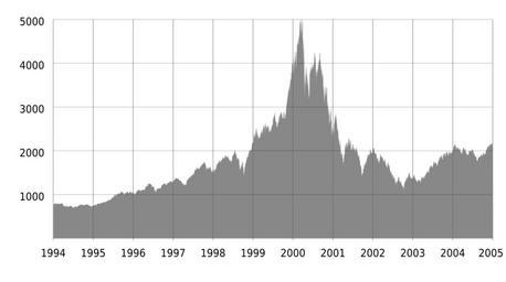 | Keywords: Nasdaq Composite dot-com bubble.svg A rendering of the NASDAQ Composite index from 1994 to 2005 showing the stunning peak in early 2000 that coincides with the dot-com bust The data in the file is daily so you can get some very good resolution from it if you want to Source http //www econstats com/eqty/eq_d_mi_5 htm en wikipedia Transfer was stated to be made by User Ddxc 2007-04-28 Lalala666 wikipedia en Lalala666 original upload log page en wikipedia Nasdaq_Composite_dot-com_bubble svg 2007-04-28 02 11 Lalala666 500×280×0 74832 bytes <nowiki></nowiki> 2007-04-28 02 03 Lalala666 500×290×0 74830 bytes <nowiki>A rendering of the NASDAQ Composite index from 1994 to 2005 showing the stunning peak in early 2000 that coincides with the dot-com bust The data in the file is daily so you can get some very good resolution from it if you want to Source http //ww</nowiki> Dot-com bubble Finance Economic history Socioeconomics Disasters Stock market indexes NASDAQ Market diagrams |