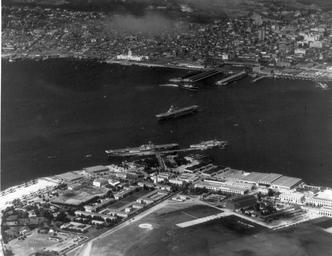 | Keywords: ship warship aircraft carrier aircraftcarrier united states navy unitedstatesnavy us navy usnavy usn aviation naval aviation navalaviation uss yorktown (cv-5) ussyorktowncv5 uss yorktown ussyorktown cv-5 cv5 yorktown-class yorktownclass uss enterprise (cv-6) ussenterprisecv6 uss enterprise ussenterprise cv-6 cv6 blackandwhite monochrome black and white Naval Air Station, San Diego, CA. View taken 28 June 1939. USS YORKTOWN (CV 5) and USS WRIGHT (AV 1) are moored at the NAS dock; USS ENTERPRISE (CV 6) is in the stream. View taken from an ENTERPRISE plane. Photo courtesy of the Naval Historical Center. Repository: San Diego Air and Space Museum Archive Naval Air Station, San Diego, CA. View taken 28 June 1939. USS YORKTOWN (CV 5) and USS WRIGHT (AV 1) are moored at the NAS dock; USS ENTERPRISE (CV 6) is in the stream. View taken from an ENTERPRISE plane. Photo courtesy of the Naval Historical Center. Repository: San Diego Air and Space Museum Archive |