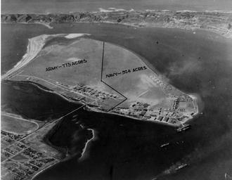 | Keywords: blackandwhite monochrome black and white North Island, San Diego Harbor, CA. Photograph taken circa mid-to-late 1920's, with penned-in annotations showing the division of the island into Army and Navy Air Stations. USS LANGLEY (CV 1) is at the dock in the lower right. Photo courtesy of the Naval Historical Center. Repository: San Diego Air and Space Museum Archive North Island, San Diego Harbor, CA. Photograph taken circa mid-to-late 1920's, with penned-in annotations showing the division of the island into Army and Navy Air Stations. USS LANGLEY (CV 1) is at the dock in the lower right. Photo courtesy of the Naval Historical Center. Repository: San Diego Air and Space Museum Archive |