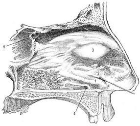 | Keywords: Nasopalatine and vomeronasal duct.png en Potiquet ™s 1891 anatomical illustration shows the openings of both the nasopalatine duct and vomeronasal organ Captions 1 pad made of Jacobson ™s cartilage; 2 opening of Jacobson ™s canal into which a probe has been inserted; 3 septal tubercle; 4 nasopalatine infundibulum funnel leading to the nasopalatine canal through the bone; 5 opening of the sphenoidal sinus; and 6 frontal sinus Potiquet M Le canal Jacobson Rev Laryngol Otol Rhinol 1891;2 737-753 fr Illustration indiquant dans la cavitĂ© nasale la position de l'ouverture du canal nasopalatin 4 et du canal vomĂ©ronasal 2 Chez la plupart des mammifères ces canaux permettent le passage des informations phĂ©romonales recueillies par le lĂ©chage ou le flehmen Chez l'ĂŞtre humain ces canaux sont en gĂ©nĂ©ral obturĂ©s et les molĂ©cules phĂ©romonales ne peuvent plus passer de la bouche Ă l'organe vomĂ©ronasal 2014-09-14 22 33 13 Potiquet M Le canal Jacobson Rev Laryngol Otol Rhinol 1891;2 737-753 Potiquet M PD-old-70-1923 Uploaded with UploadWizard Nasal cavity |