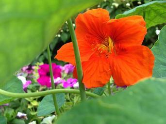 Keywords: nasturtium blossom bloom orange green decoration edible