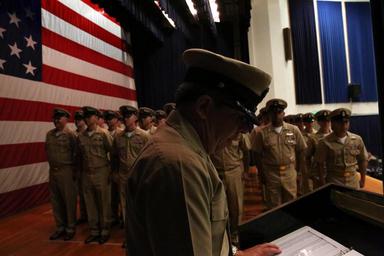 | Keywords: NASWI pins 73 Chiefs 160916-N-DC740-098.jpg en 160916-N-DC740-098 OAK HARBOR Wash Sept 16 2016 Command Master Chief Retired Darin Hand speaks during a Chief Petty Officer pinning ceremony at Naval Air Station Whidbey Island The CPO pinning ceremony is a unique tradition to the Navy and signifies a crucial position of leadership and responsibility for the Navy The CPO rank was created April 1 1893 U S Navy photo by Mass Communication Specialist 2nd Class John Hetherington <br>Unit Navy Public Affairs Support Element Det Northwest 2016-09-16 Petty Officer 2nd Class John Hetherington https //www dvidshub net/image/2861873/naswi-pins-73-chiefs 160916-N-DC740-098 2016-09-19 16 08 OAK HARBOR WA US PD-USGov-Military-Navy Naval Air Station Whidbey Island Images from DoD uploaded by Fæ |