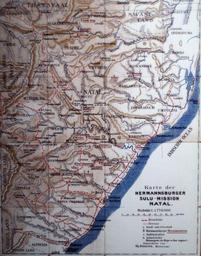 | Keywords: Natal 1910 BomannMuseum@20150903.JPG Artwork Th Petersen Missionar Ev -Luth Missionswerk in Niedersachsen en Map of the Colony of Natal South Africa Natal das an der Ostküste Südafrikas liegt gehört 1910 zum britischen Kolonialreich Mehr als 50 Jahre sind die Missionare aus Hermannsburg dort vor Ort und haben zahlreiche Niederlassungen gegründet Aus diesem Grund tragen viele Orte hier die gleichen Namen wie Gemeinden und Städte in Niedersachsen 1910 Institution Bomann-Museum Celle place of discovery object history exhibition history credit line accession number place of creation uploader was Hajotthu at http //de wikipedia org de wikipedia PD-old Paintings in the Bomann-Museum History of Christianity Hermannsburger Mission Maps of Natal |