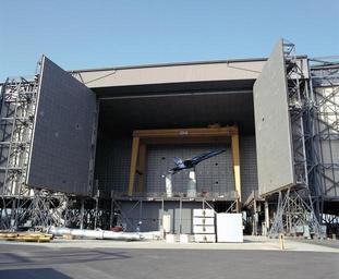 | Keywords: outdoor architecture building (AC93-0150-114): This photograph shows a McDonnell Douglas F/A-18 being installed in the National Full-Scale Tunnel Aerodynamics Complex’s 80- by 120-foot test section. (AC93-0150-114): This photograph shows a McDonnell Douglas F/A-18 being installed in the National Full-Scale Tunnel Aerodynamics Complex’s 80- by 120-foot test section. | ||||