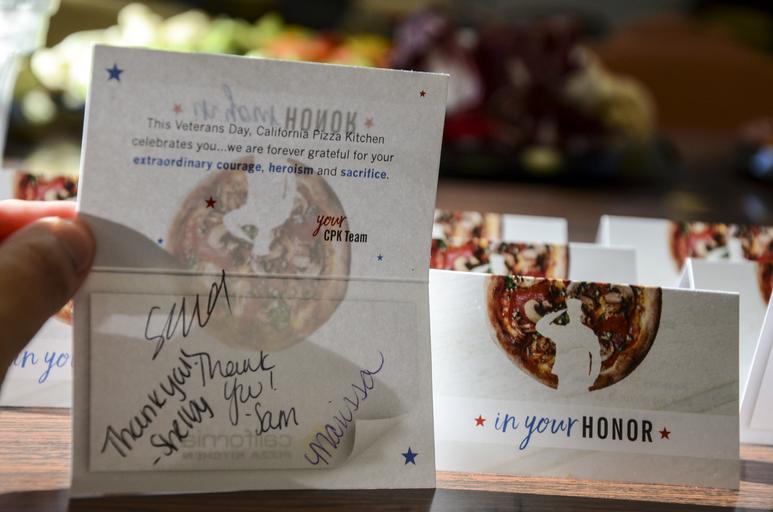 | Keywords: milwaukee va medical center clement j. j zablocki veterans affairs veteran healthcare service text California Pizza distributed special honor cards for all Veterans that read, “This Veterans Day, California Pizza Kitchen celebrates you… we are forever grateful for your extraordinary courage, heroism and sacrifice -- your CPK team.” California Pizza distributed special honor cards for all Veterans that read, “This Veterans Day, California Pizza Kitchen celebrates you… we are forever grateful for your extraordinary courage, heroism and sacrifice -- your CPK team.” |