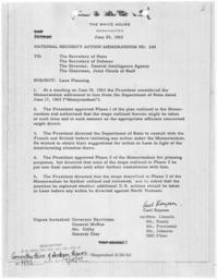 | Keywords: National Security Action Memorandum No. 249 Laos Planning - NARA - 193623.jpg Scope and content Memorandum for Secretary of State and others on the President's approval of plans concerning Laos General notes 193623 Local identifier President 1961-1963 Kennedy Office of the Special Assistant to the President for National Security Affairs 01/20/1961 - 11/22/1963 NARA-Author Kaysen Carl 1920- Author 1133982 <br /> John F Kennedy Library NLJFK Columbia Point Boston MA 02125-3398 1963-06-25 Record group Collection JFK-NSF Papers of President Kennedy National Security Files 01/20/1961 - 11/22/1963 Record group ARC 1164 National Security Files Meetings and Memoranda compiled 1961 - 1963 Series ARC 193354 File unit National Security Files Meetings and Memoranda National Security Action Memoranda 02/03/1961 - 11/13/1963 File unit ARC 193400 Variant control numbers NAIL Control Number NLK-NSF-MM-NSAM-10IIIQ Other versions <gallery> File National_Security_Action_Memorandum_No _249_Laos_Planning_-_NARA_-_193623 tif tif File National_Security_Action_Memorandum_No _249_Laos_Planning_-_NARA_-_193623 jpg jpg </gallery> NARA-cooperation PD-USGov Check categories-NARA 2011 September 19 Presidential Decision Directives Kennedy |