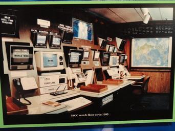 | Keywords: National Security Operations Center photograph, c. 1985 - National Cryptologic Museum - DSC07661.JPG en Exhibit in the National Cryptologic Museum Fort Meade Maryland USA All items in this museum are unclassified; items created by the United States Government are not subject to copyright restrictions 2013-03-29 09 48 57 own Daderot cc-zero National Security Operations Center National Cryptologic Museum Uploaded with UploadWizard | ||||